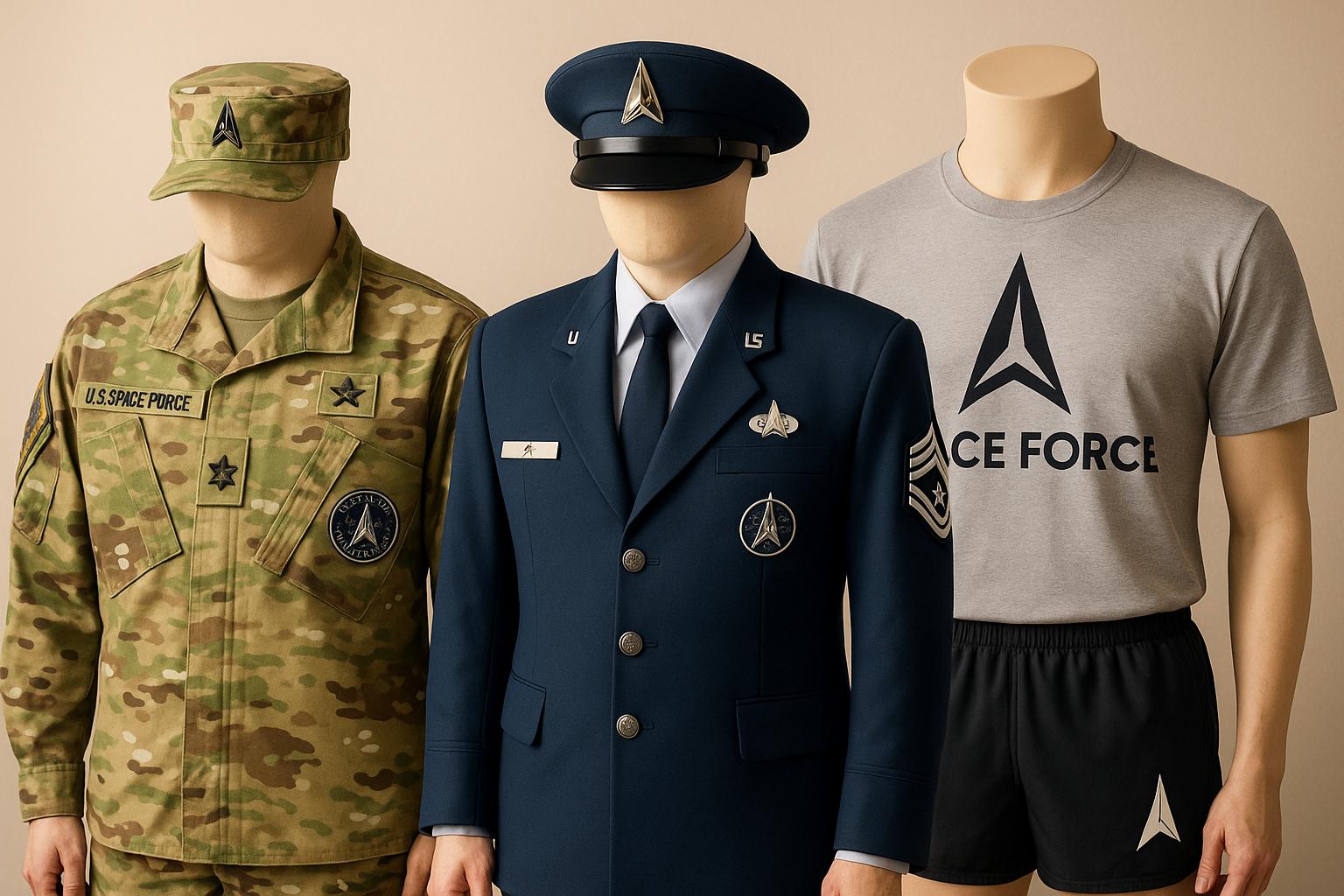 Complete visual guide to Space Force uniforms and SPFI 36-2903: OCP, service dress, PT gear, grooming rules, mission tabs and compliance for personnel.